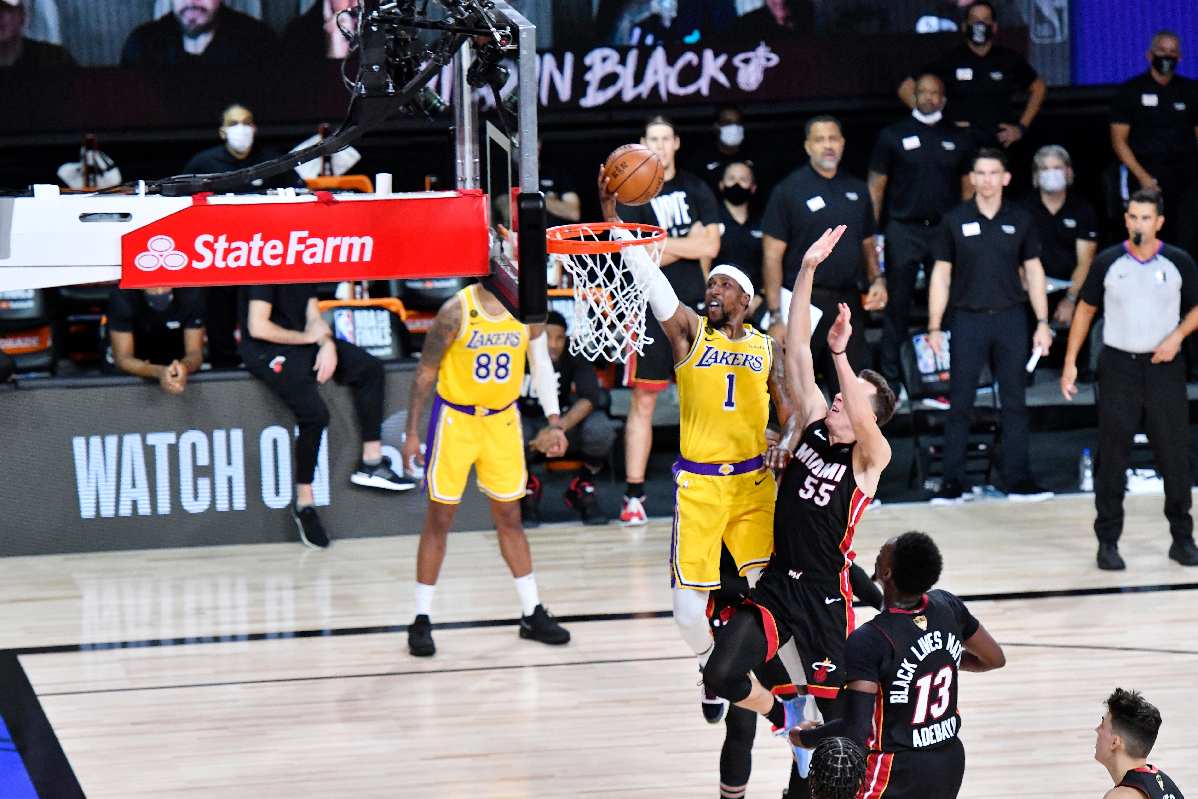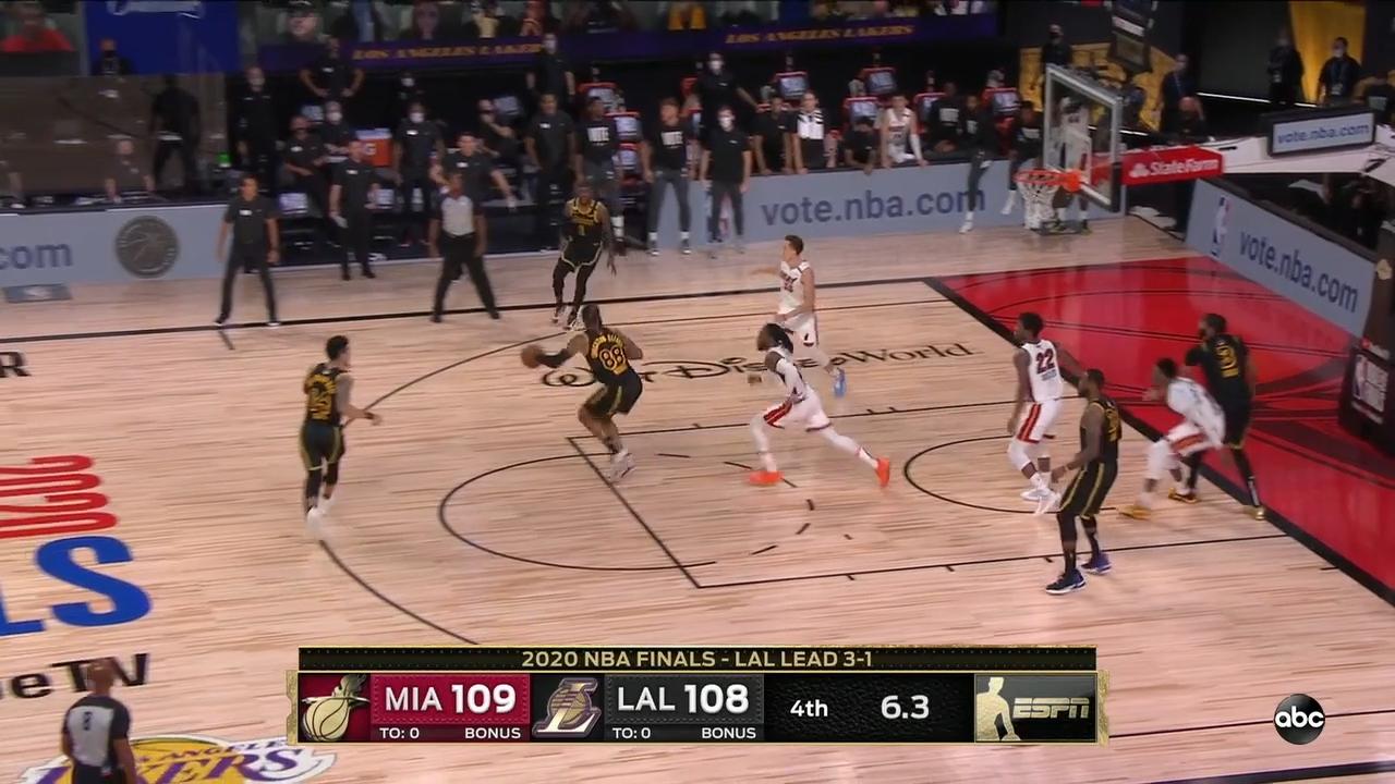 3쿼터 때 마이애미 타임 아웃이 하나 밖에 남지 않았을 정도. 마이애미는 레이커스의 변칙 선발 및 라인업에 기민하게 대응도 못했다.